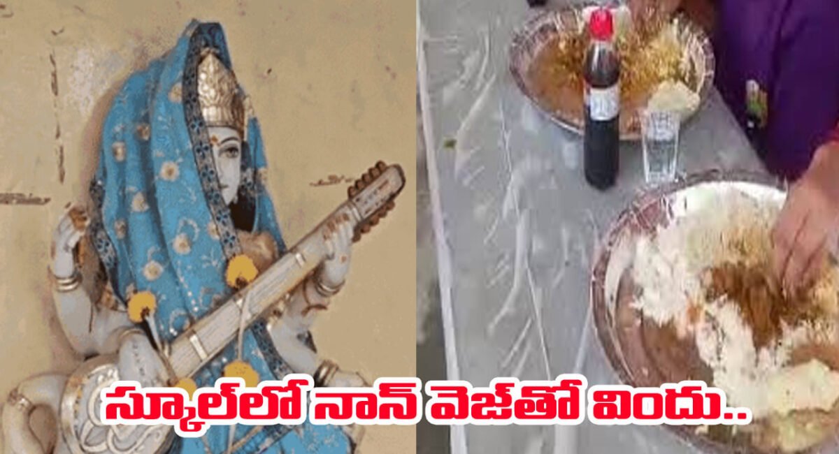 - సరస్వతి విగ్రహానికి చున్నీ కప్పి మరీ ప్రభుత్వ పాఠశాలలో నాన్-వెజ్ పార్టీ ..