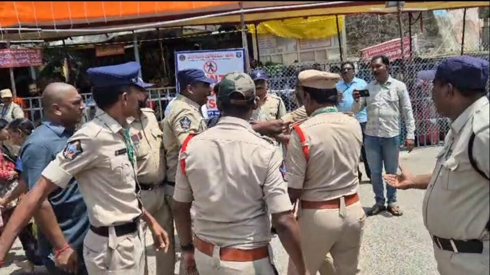 విజయవాడ దుర్గ గుడిలో విధులు నిర్వహించేందుకు వెళుతున్న మీడియా కెమేరా మెన్ పైన పోలీసులు దౌర్జన్యంగా ప్రవర్తించడం విజయవాడ మీడియా ప్రతినిధులలో ఆగ్రహానికి గురి చేస్తుంది. బహిరంగంగానే, దౌర్జన్యం చేస్తున్నారు. చొక్కా పట్టుకుని మరీ నెడుతున్నారు. ఒకరు కాదు, ఇద్దరు కాదు, ఏకంగా ఆరుగురు పోలీసులు ఒక మీడియా ప్రతినిధిని చుట్టుముట్టారు. ఇటు ఎందుకు వచ్చావంటూ గట్టిగా అరుస్తూ ఎంతో బరువైన కెమేరా బ్యాగును మోసుకుని వస్తున్న కెమెరా మేన్ ను తోయడంతో సదరు కెమేరా మెన్ కింద పడబోయాడు. అంతలో మరో పోలీసు పట్టుకున్నాడు. పోలీసుల అహంకారానికి అద్దం పట్టే విదంగా ఉన్న ఈ చర్యతో పోలీసులు ఎంత నిర్లక్ష్యంగా విధులు నిర్వహిస్తున్నారో అర్దం చేసుకోవచ్చు. విజయవాడలో మీడియా ప్రతినిధుల పరిస్తితే లా ఉంటే సామాన్య భక్తుల పరిస్తితి ఎలా ఉందో అర్ధం చేసుకోవచ్చు. సాదారణ భక్తుల మాదిరిగా పోలీసు కమీషనర్, కలెక్టర్ లు క్యూ లైనులో దర్శనానికి వెళుతూ ఫోటోలు దిగుతున్నారు. కానీ అదే సమయంలో అక్కడ విధులు నిర్వహిస్తూ.. సమాచారాన్ని ఎప్పటికప్పుడు భక్తులకు చేరవేస్తున్న మీడియా ప్రతినిధుల పైన పోలీసులు దౌర్జన్యం చేయడాన్ని పాత్రికేయ సంఘాలు ఖండిస్తున్నాయి. మీడియా ప్రతినిధుల పైన దౌర్జన్యానికి పాల్పడిన ఈ పోలీసులపై ఏ చర్యలు తీసుకుంటారో చెప్పాలంటూ వారు ప్రశ్నింస్తున్నారు. ఈ వీడియోలో ఉన్న పోలీసులకు దౌర్జన్యం చేయమని మీడియా ప్రతినిధులపై జులుం ప్రదర్శించమని ఎవరు ఆదేశాలు ఇచ్చారో అర్ధం కావడం లేదంటూ వారు ఆగ్రహం వ్యక్తం చేస్తున్నారు. రాష్ట్ర ముఖ్యమంత్రి చంద్రబాబునాయుడు, రాష్ట్ర హోం మంత్రి అనిత, రాష్ట్ర డిజిపి ఈ పోలీసుల చర్యలను కూటమీ ప్రభుత్వ పెద్దలు సమర్థిస్తారా లేదా చర్యలు చేపడతారా చూడాలి. ఆ కూటమి ప్రభుత్వానికి చెడ్డ పేరు తీసుకు వస్తున్న పోలీసులపై చర్యలు తీసుకోవాలని పాత్రికేయ సంఘాల ప్రతినిధులు కోరుతున్నారు.
