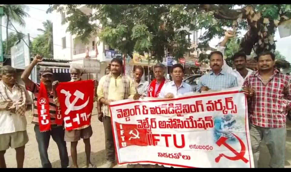ఈ సందర్భంగా ఐ.యఫ్.టి.యు రాష్ట్ర కమిటీ సభ్యులు ఈమని గ్రీష్మ కుమార్, భవన నిర్మాణ కార్మిక సంఘం జిల్లా కమిటీ సభ్యులు మల్లిడి రామిరెడ్డి లు మాట్లాడుతూ ఎన్నికల్లో గెలుపే పరమావధిగా వివిధ వర్గాల ప్రజలకిచ్చినట్లుగానే భవన నిర్మాణ కార్మికుల కు సంక్షేమ పథకాలు అమలు చేస్తామని ఇచ్చిన హామీ మేరకు కూటమి ప్రభుత్వ పెద్దలు తమ కార్మిక శాఖ మంత్రి శ్రీ వాసం శెట్టి శుభాష్ ద్వారా అసెంబ్లీ సాక్షిగా కార్మికుల ఆడ పిల్లలకు వివాహ కానుక కింద 40 వేలు ప్రకటించారు. ఆ మేరకు కోట్ల రూపాయలు వెచ్చించి పత్రికలలో ప్రకటన లు ఇచ్చారు. లేబర్ అధికారుల ద్వారా కార్మిక సంఘాల నాయకులతో సమావేశాలు నిర్వహించి ప్రభుత్వ ముద్రిత కరపత్రాల ద్వారా విస్తృత ప్రచారం నిర్వహించారు. కానీ అధికారికంగా 18 మార్చి 2026 న విడుదల చేసిన జి.ఓ లో మాత్రం వివాహ కానుక కేవలం 20 వేలు మాత్రమే ప్రకటించారు. ప్రమాద మరణ పరిహారం, అసెంబ్లీ సాక్షిగా ప్రకటించిన కార్మికుల పిల్లలకు స్కాలర్ షిప్ ల ఊసే లేదు. కార్మికుల కు సంక్షేమ పథకాలు అన్నీ అమలు చేస్తామని ఇచ్చిన హామీ ని ఈ విధంగా నీరు కార్చి తీరని ద్రోహానికి ఒడిగట్టారు. తక్షణమే తమ ఎన్నికల హామీ మేరకు ప్రమాద మరణ పరిహారం తో సహా అన్ని పధకాలు అమలు చేయని పక్షంలో కార్మికులు తిరిగి ఆందోళనలతో రోడ్డు ఎక్కుతారని హెచ్చరించారు.