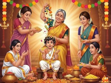 పిల్లల తల పైభాగంలో ఉండే ‘బ్రహ్మరంధ్రం’ వద్ద ఈ పండ్లను పోయడం వల్ల పిల్లల్లో జ్ఞానం పెరుగుతుందని, రోగ నిరోధక శక్తి మెరుగుపడుతుందని విశ్వాసం.
